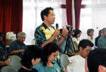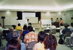 当日は、午後1時に開場しはじめに、浦添市長儀間光男の挨拶がありました。その中で「まちづくりは市民ニーズにどう応えていくかが大きな課題。市民参加のまちづくり事業にご協力いただき、みなさまには心から感謝いたします。」との話がありました。 その後、第1回の助成団体の活動報告があり、続いて応募9団体の代表が応募内容に関する熱の入った発表がありました。